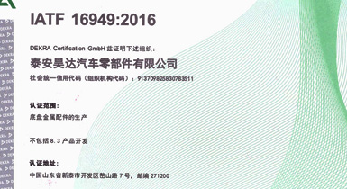 公司擁有IATF16949:2016國際標(biāo)準(zhǔn)質(zhì)量管理體系認(rèn)證,精良的設(shè)備、先進(jìn)的生產(chǎn)工藝及完善的質(zhì)量檢測保證了公司產(chǎn)品的可靠品質(zhì)...